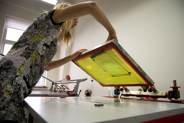 Nästa berättelse visar Emma som gör screentryck i Konstnärernas Kollektivverkstad: